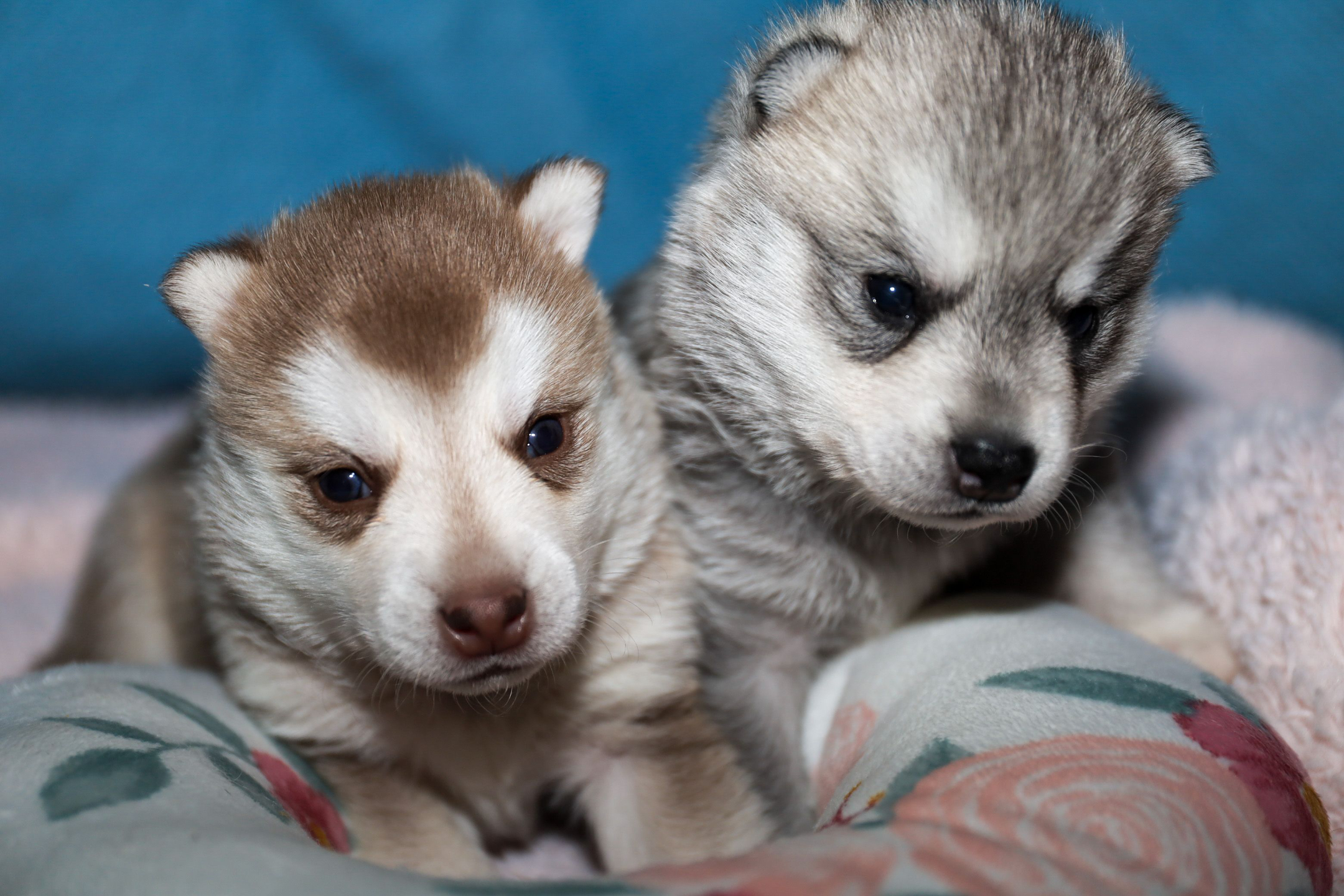Jazz and River blessed us with 1 beautiful gray and white female puppy, and 1 beautiful red and white female puppy.